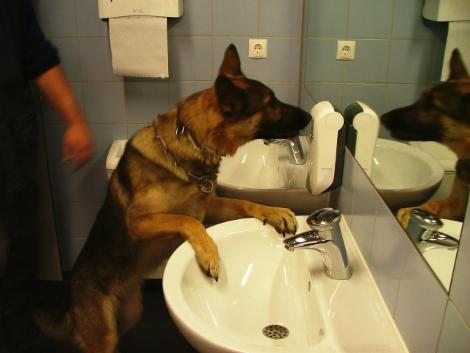 Der Hund muss auf Anweisung auf Tische oder Schränke usw. springen und auf Handzeichen auch z.B. Steckdosen, Schalter, Handtuchspender usw. absuchen.